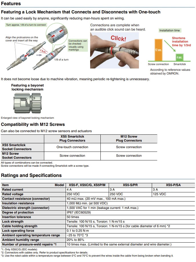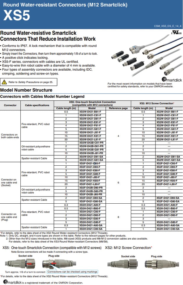 Omron XS5F-D421-G80-F Smartclick M12 (F), 4P, A coded, sensor cable, IP67 1PCS