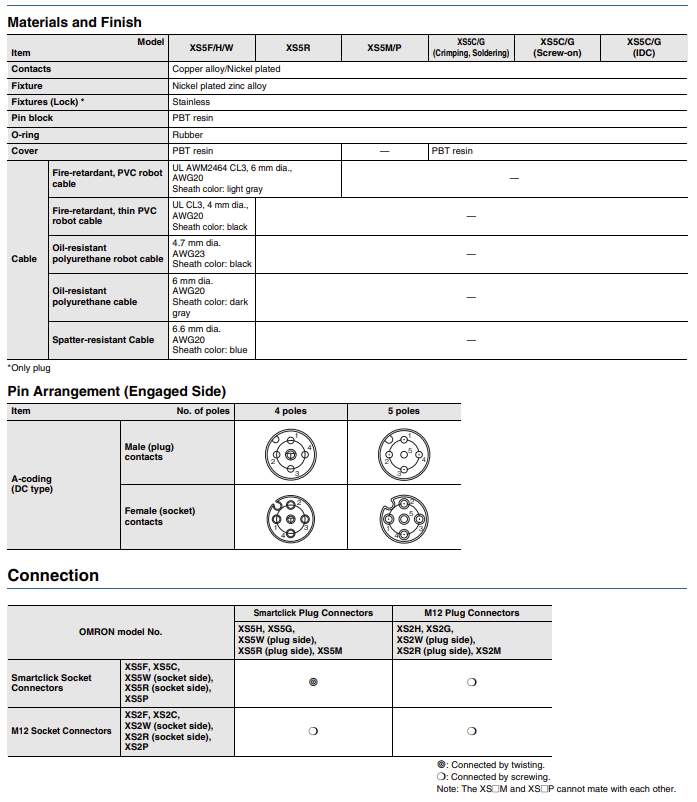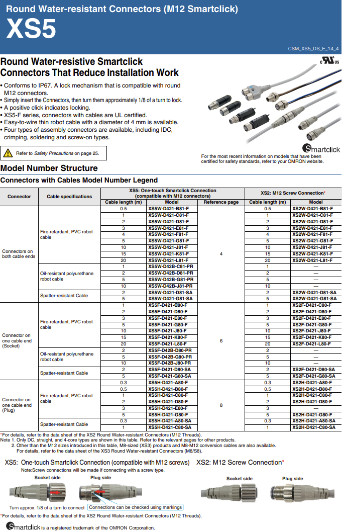 Omron XS5F-D421-G80-F Smartclick M12 (F), 4P, A coded, sensor cable, IP67 5PCS