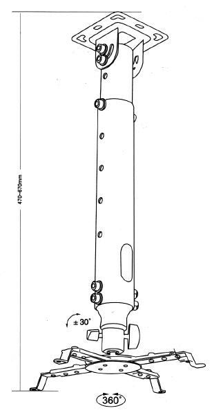 ABI PJ103W Ceiling Mounts Universal Projector 10kg tiltable 450-750mm telescopic