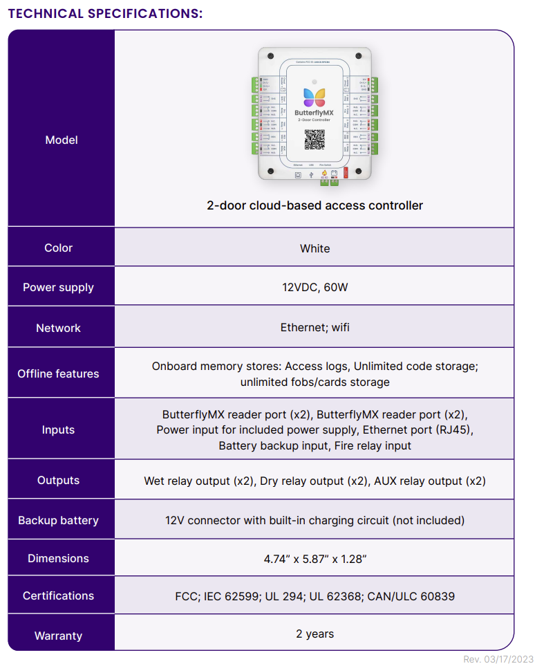 Access Control Kit — 2-Door Controller + ButterflyMX Keypad