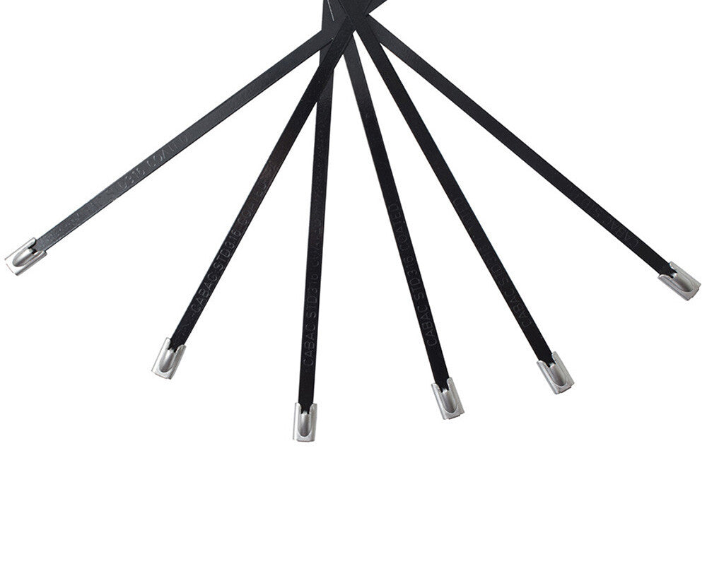 Coated stainless-steel cable ties for fast, durable bundling. Made from 316 stainless steel with a polyester resin coating that’s UV-resistant, low-smoke, and halogen-free. The coating adds a smooth protective layer over sharp edges to help protect cable insulation and installer hands.
