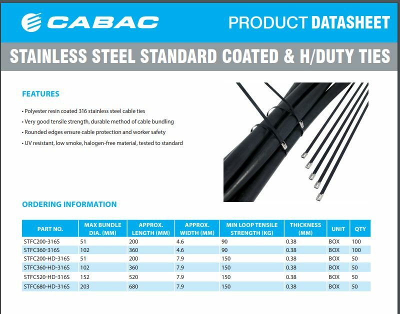 Cabac STFC200-316S Fully Coated 316 Stainless Steel Cable Ties 200mm (Box 100)