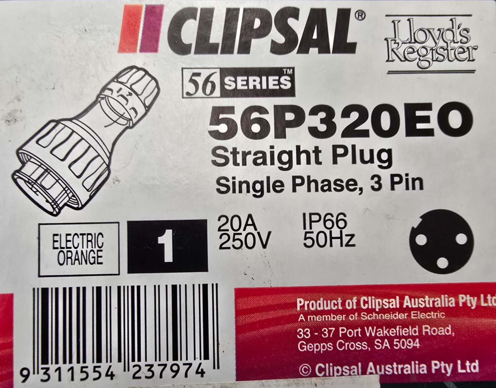 Clipsal 56P320 56P320EO 20A 20-amp 3 Pin plug Straight Round Single Phase