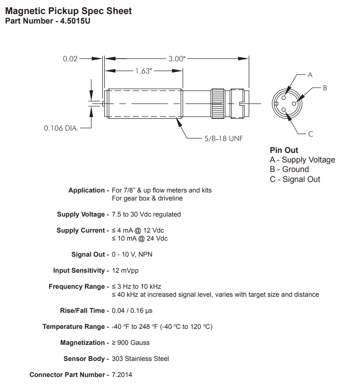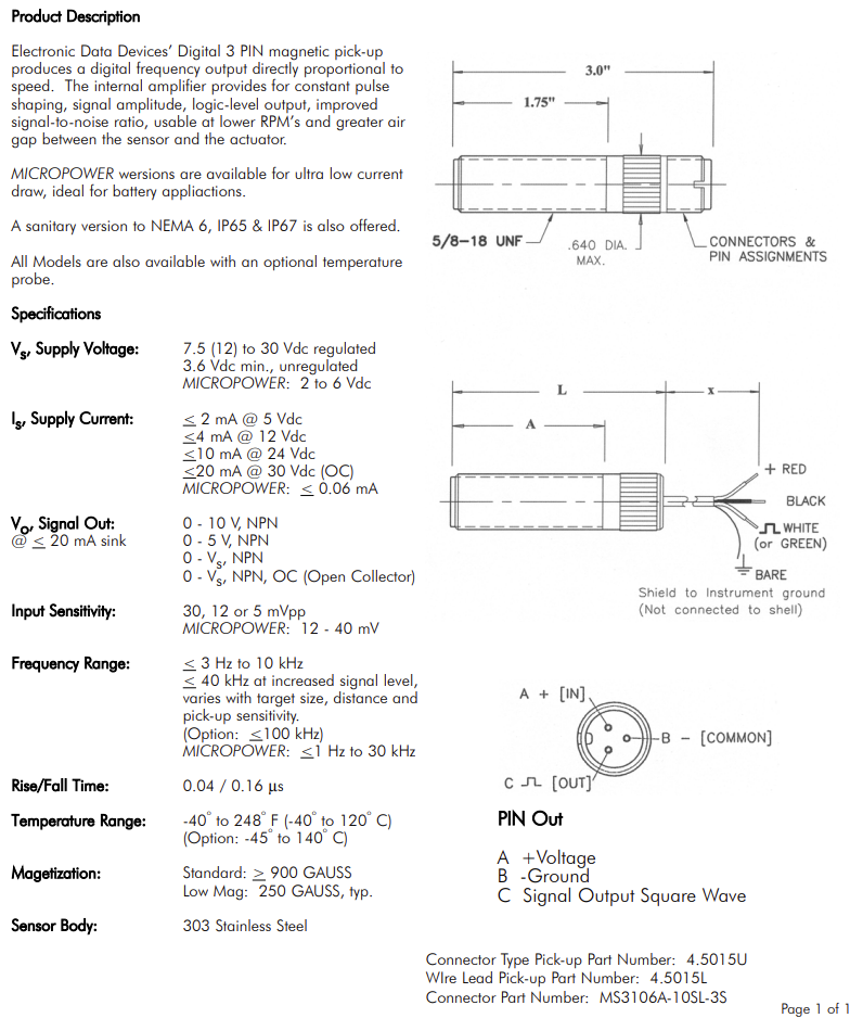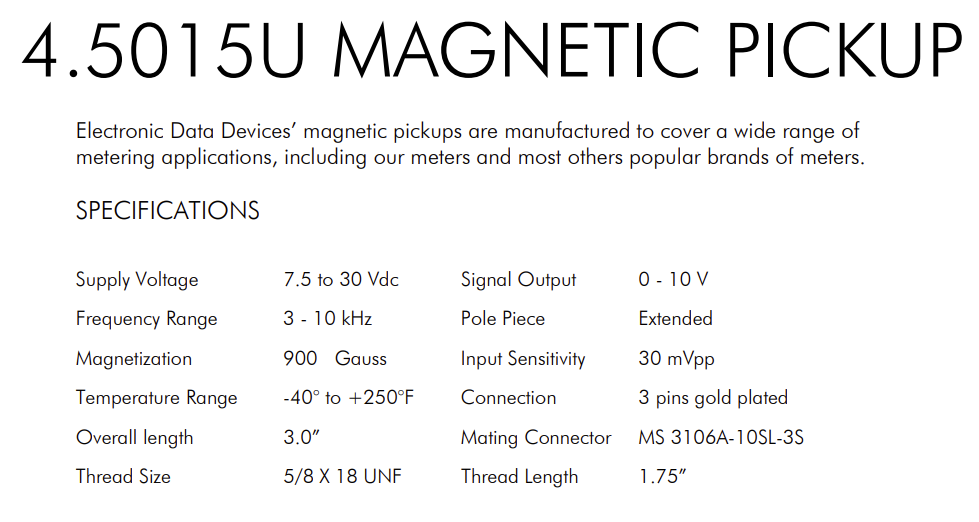 EDD 4.5015U Magnetic Pick-up Sensor (NEW)