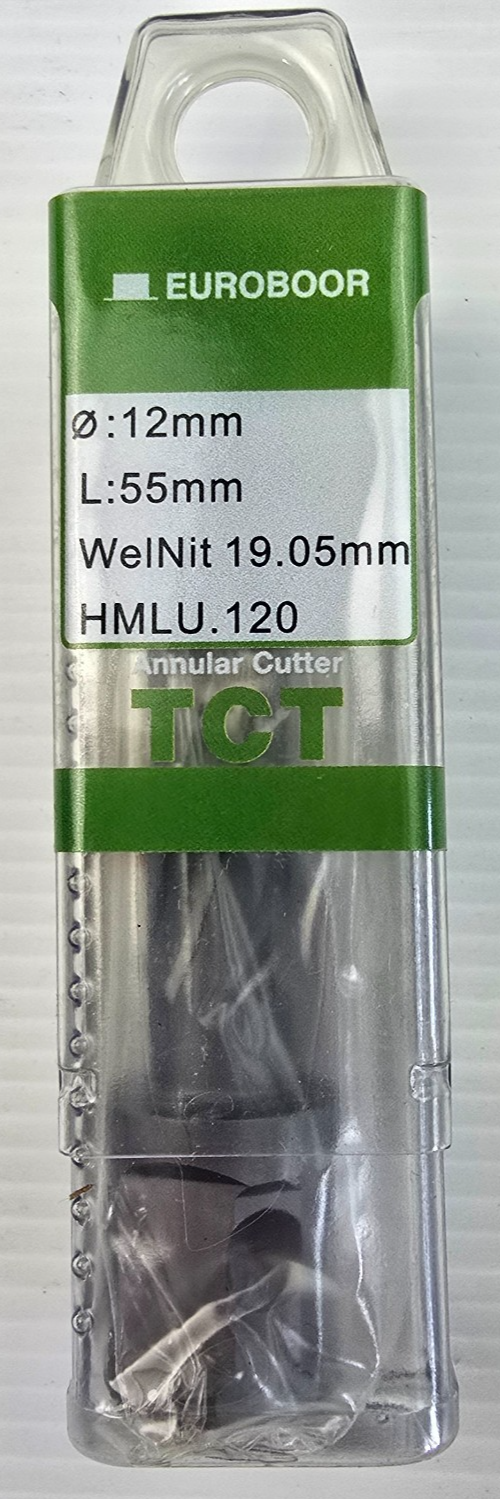 Euroboor HMLU.120 Annular Cutter TCT D12mm L55mm WelNit 19.05mm (NEW)