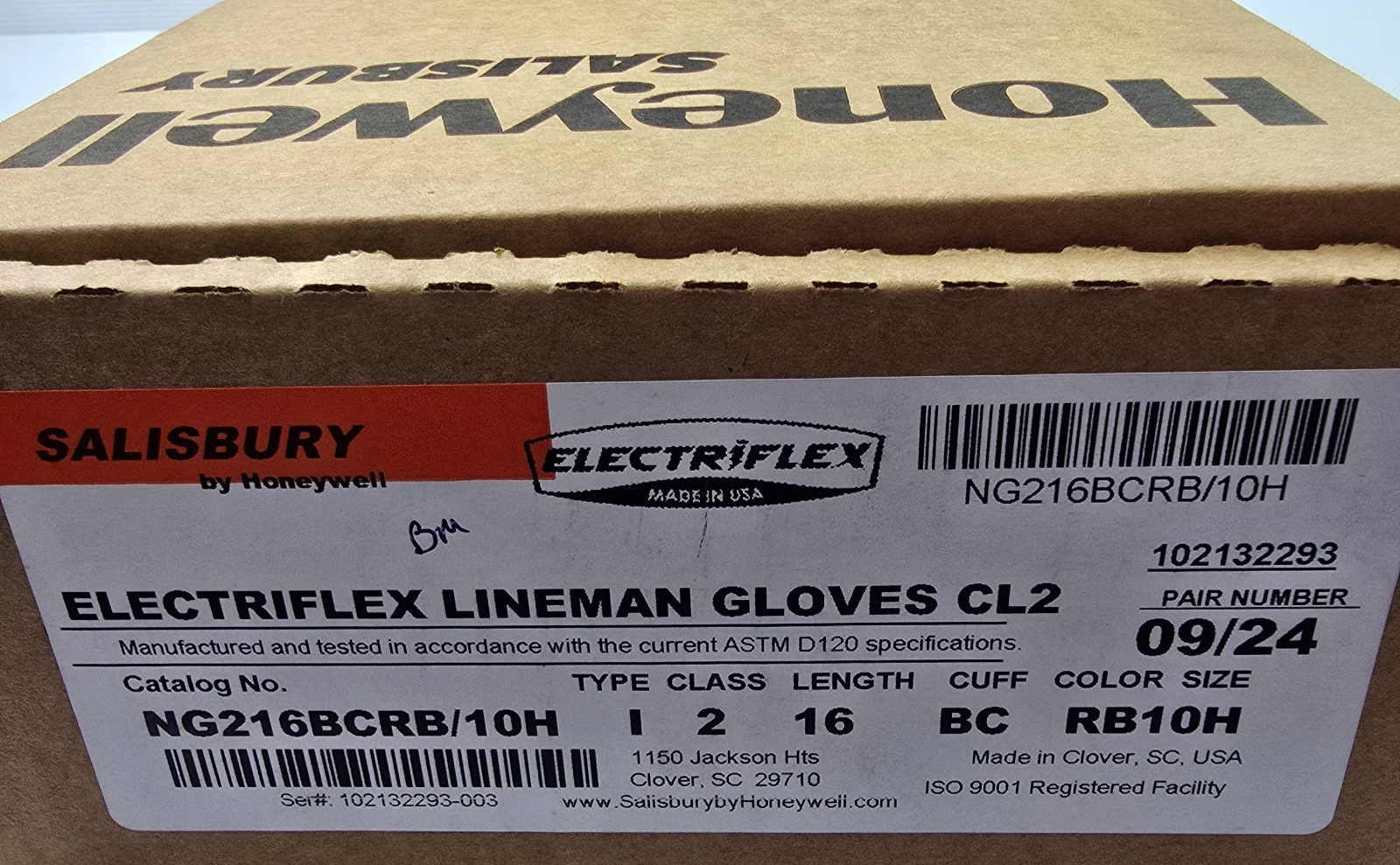 Honeywell NG216BCRB/10H ELECTRIFLEX CLASS 2 RUBBER INSULATING GLOVES Size 10 NEW