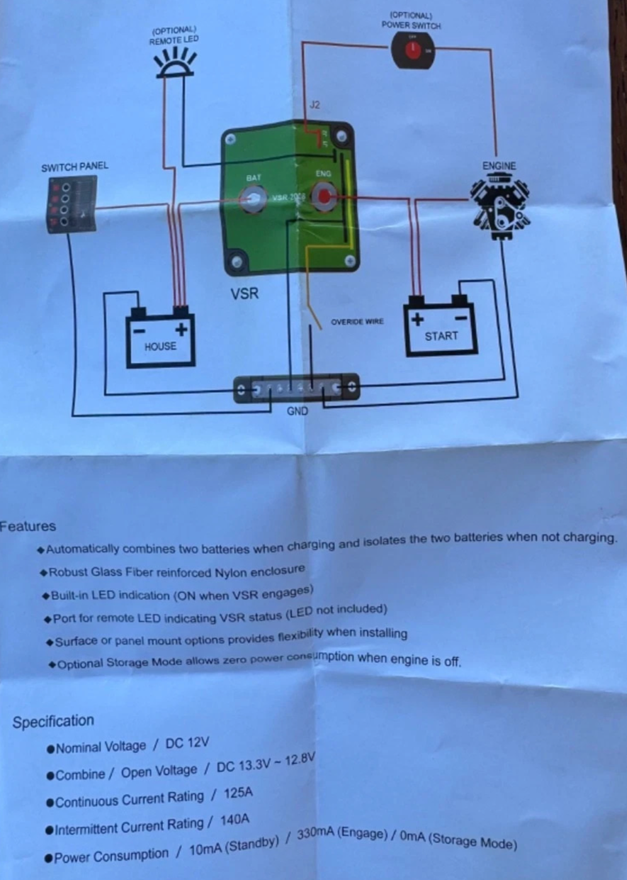 Model / Type: 12V Voltage Sensitive Relay (VSR)