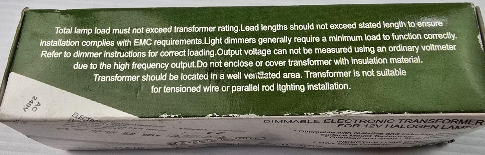 Pack of 1 electronic dimmable transformer for 12V halogen lights
