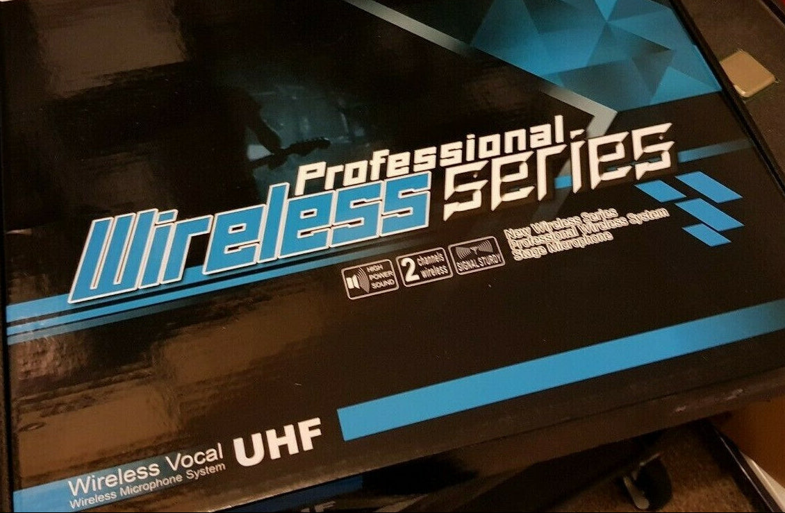 Included: UHF receiver, handheld microphone transmitter, microphone kit components as supplied.