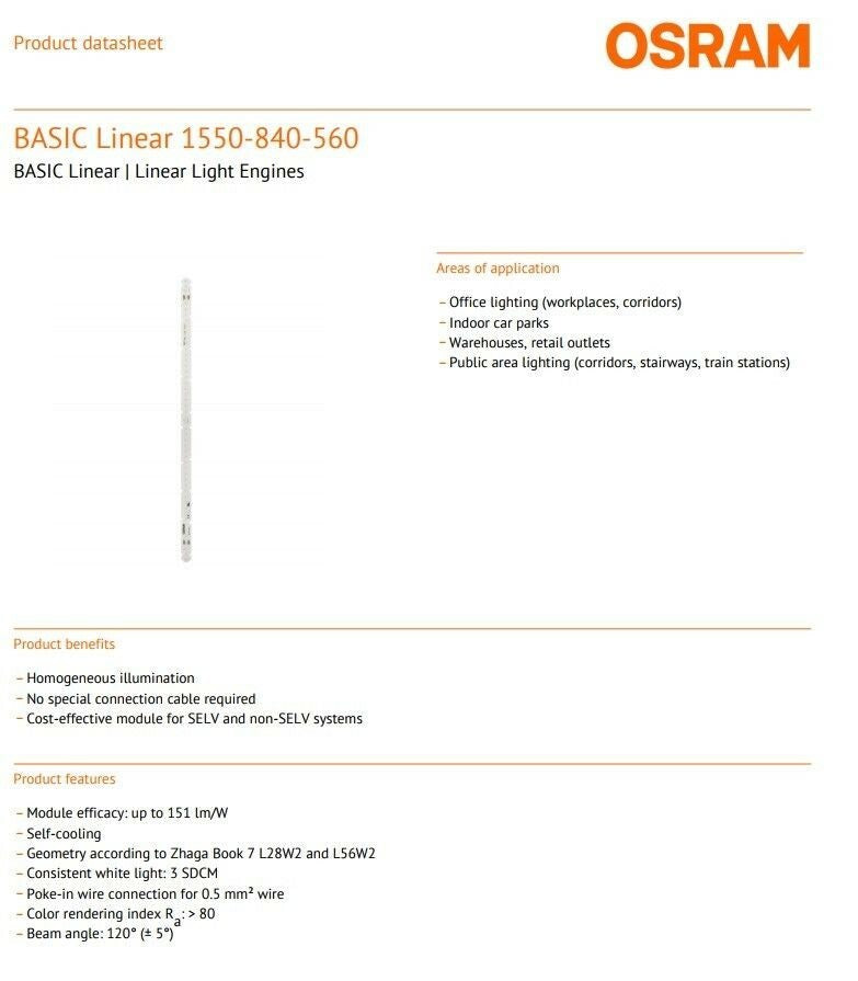 OSRAM Basic Linear 50 x LED 1550-840-560 Strip 10W 4000K Cool White 560mm Dimmable 30V