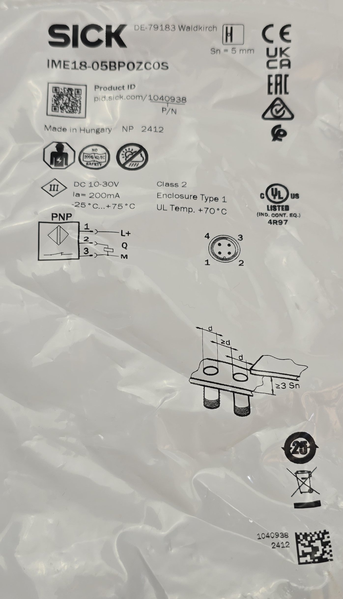 Title: SICK IME18-05BP0ZCOS Inductive Proximity Sensor M18 PNP NO 10–30V DC 5mm Range (NEW)