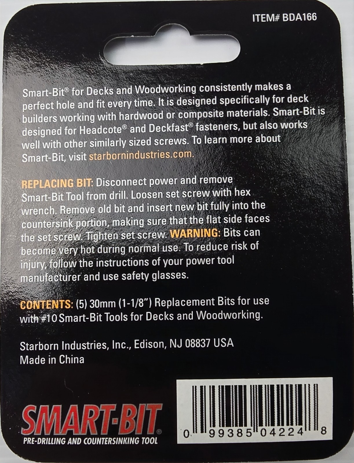 SMART-BIT BDA166 [4 Lots] 5-Pack Tool Replacement Pre-drill 10g 30mm 1-1/8" (NEW)