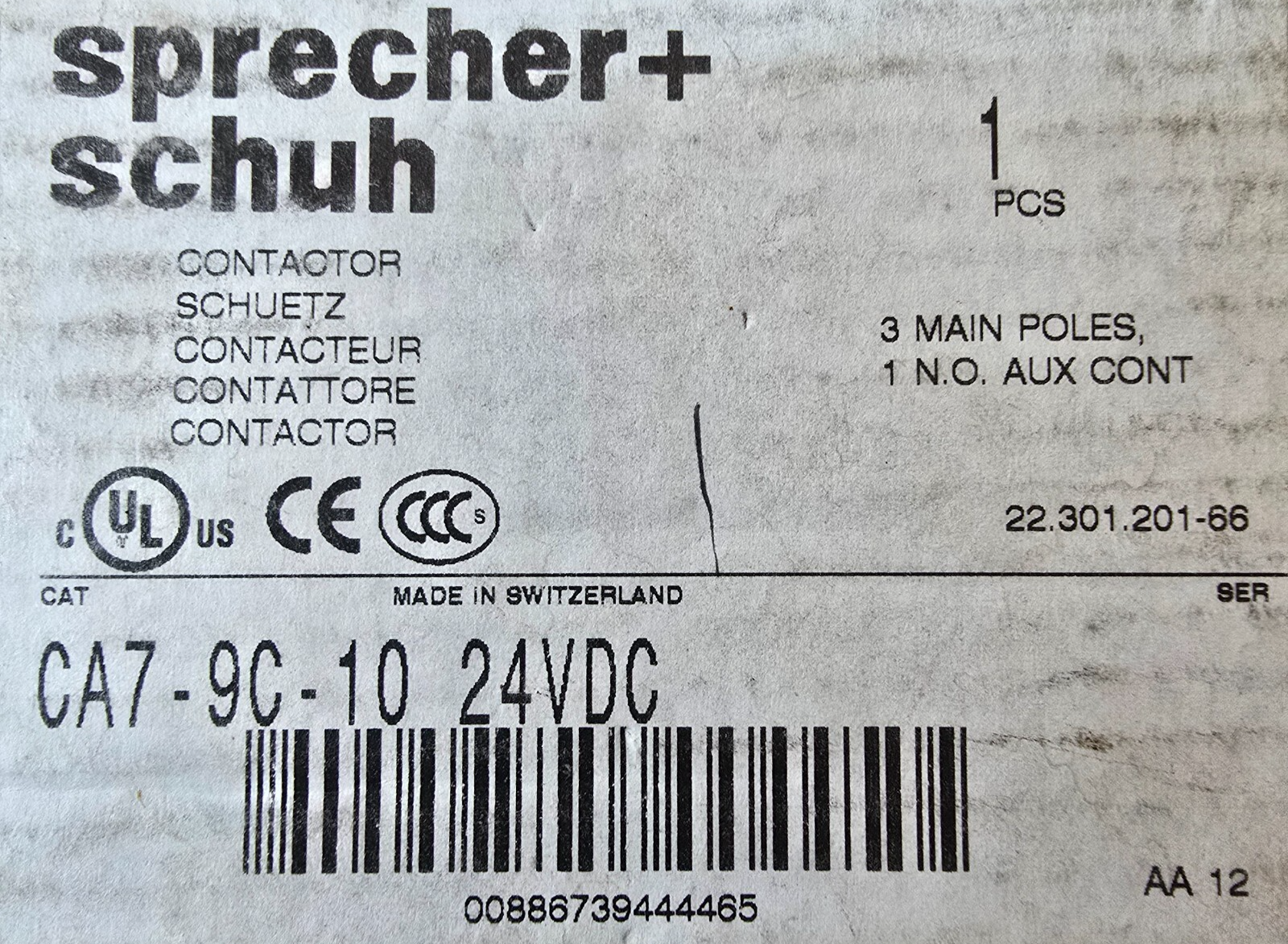 Description: The Sprecher + Schuh CA7-9C-10 is a 3-pole contactor rated at 9A / 4kW and equipped with a 1 N/O auxiliary contact. It operates with a 24V DC coil and is designed for motor control and general-purpose switching in industrial and commercial applications.