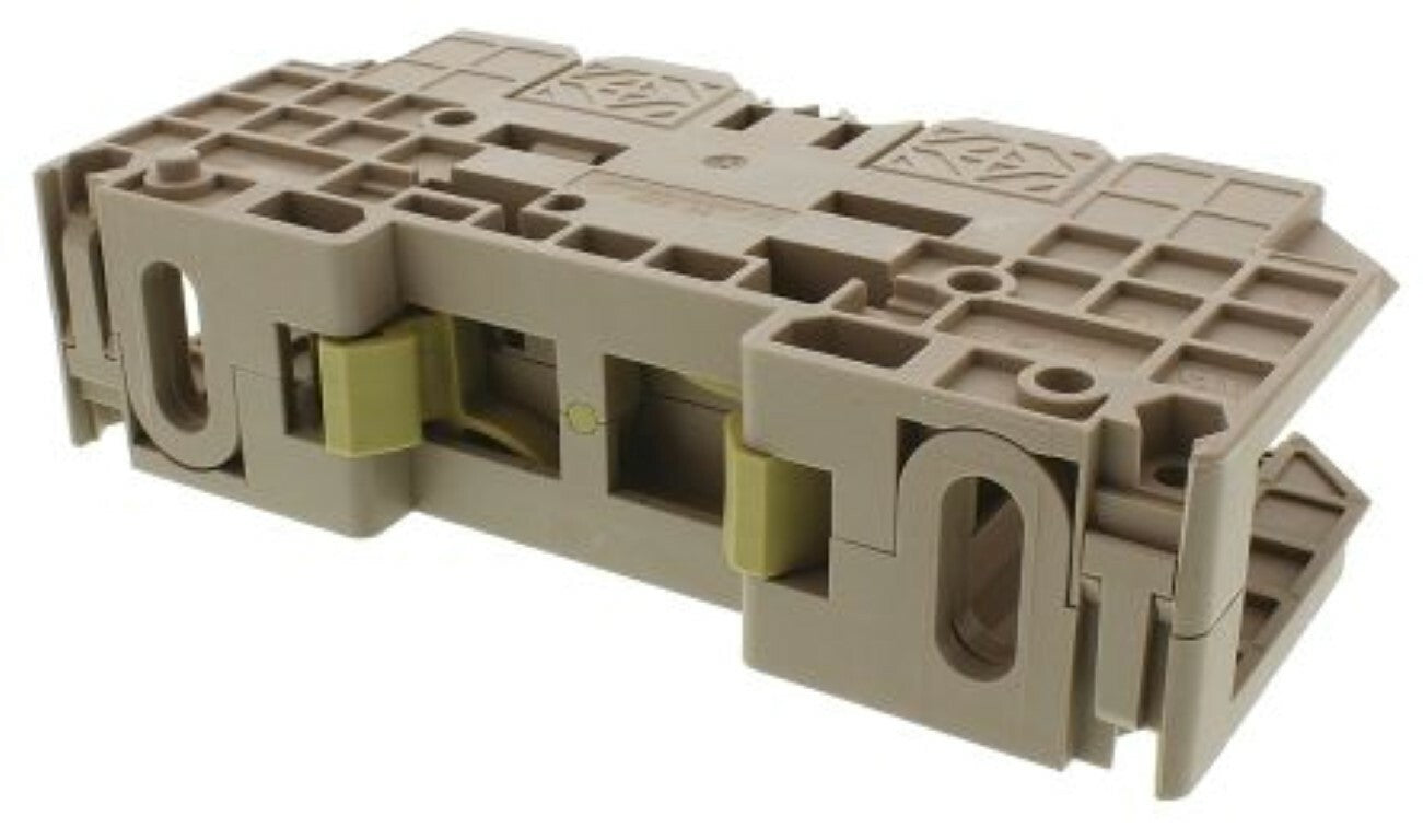 The W series screw clamp terminals are suitable for Top Hat DIN rail mounting and manufactured from nylon 6.6, with a continuous temperature rating of 120 °C (180 °C short term). They are self-extinguishing to UL94 V-0 and free from cadmium and halogen. Current bars are constructed from 10 mm electrolytic copper to ensure current capacity above the nominal rating. Terminals are touch-proof in accordance with BS 3042.