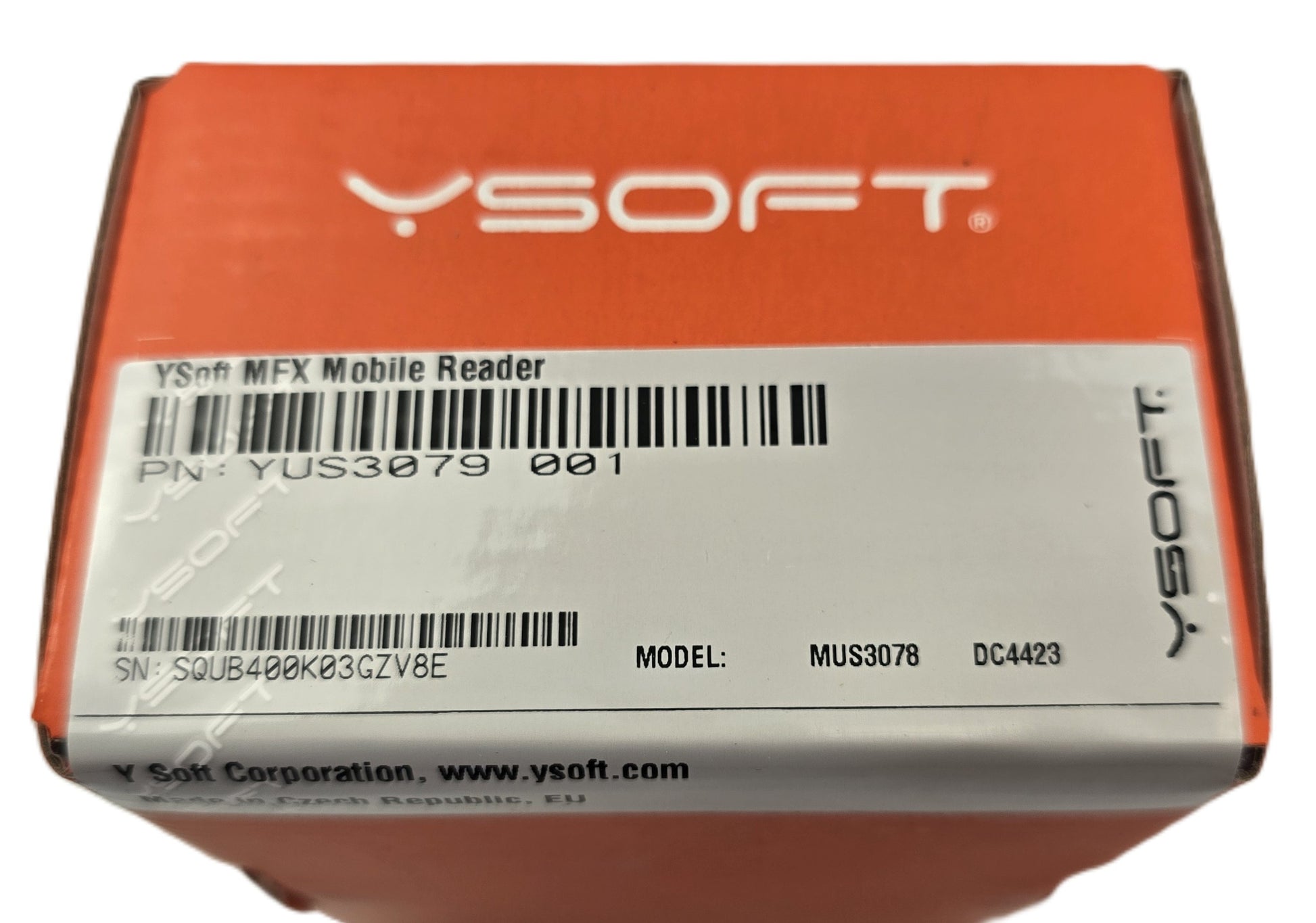 Description: The YSoft MFX Mobile Reader (Model MUS3078) is a compact USB-powered RFID/NFC card reader designed for secure mobile authentication and user identification. It supports multiple RFID technologies and integrates easily with YSoft SafeQ and other secure print or access control systems. With plug-and-play functionality and wide compliance certifications, it ensures quick setup and reliable operation across enterprise environments.