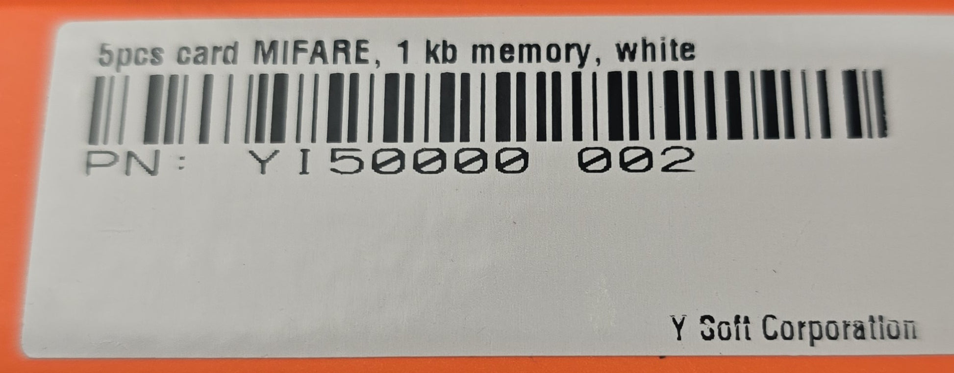 Description: Y Soft MIFARE 1KB contactless smart cards are designed for use with compatible RFID/NFC readers for secure user identification, access control, and print management. Each card contains 1 KB of memory and operates at 13.56 MHz, ensuring reliable communication and authentication. Supplied as a set of 5 white PVC cards, ideal for enterprise, education, and office applications.