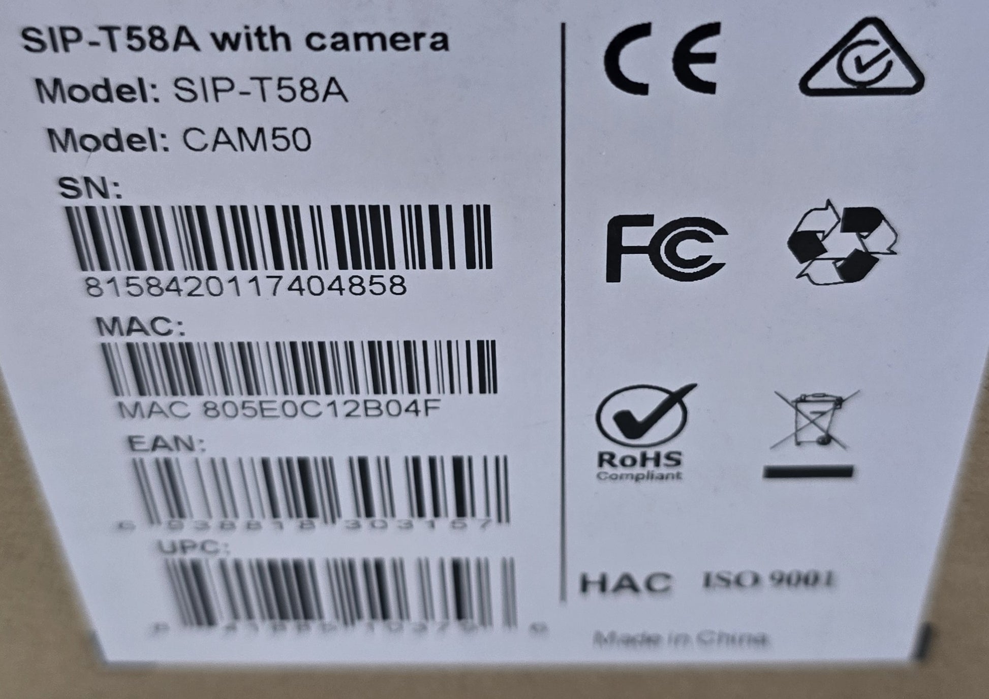Included Items: SIP-T58A phone unit, handset, CAM50 USB camera, original box and manuals (see photos)